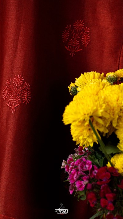 To add to this, Noir, is a series we had created a couple of years back, to celebrate a new dimension in Chikankari embroidery – the tone on tone dark. We started this process with Black, & since then have tried Moss Green, and now moving to explore Oxblood shade. This kind of Chikankari is the opposite of classic & ethereal White on White or pastel Tone on Tone. This is rich, decadent, sultry, elegant, mysterious & yet, stately.