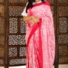 6. The body of the saree is that is white is dyed again simple Shibori Tie patterns in Green & then remaining white part in Red, completelty avoiding the Palla that is for Hand Nui Shibori.