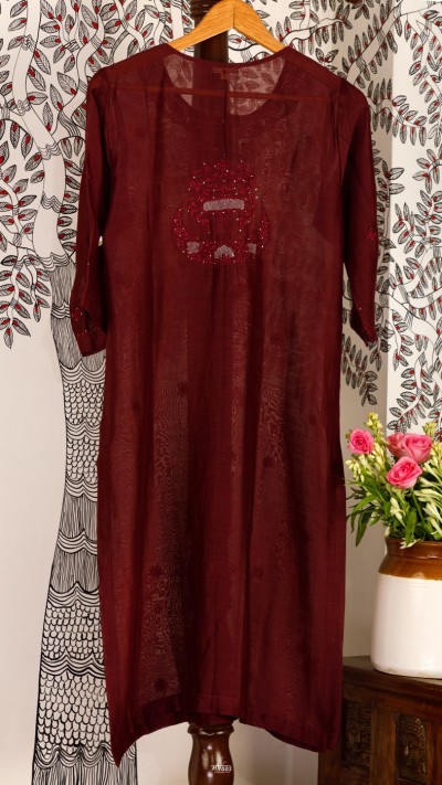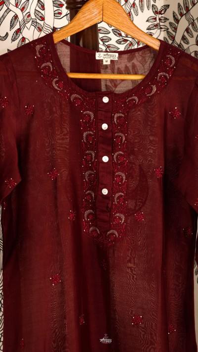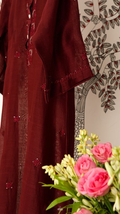 An Oxblood shade Chikankari Kurta in our Noir series of exploring rich, dark shades. The Kurta is a classic in our Noir moodboard!