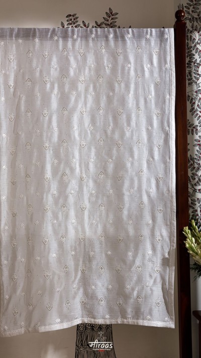 A moon like pristine White on White Chikankari & Mukaish dupatta on handwoven Chanderi.