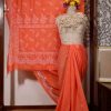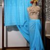 Extremely fine quality of embroidery on each motif of the saree, enhances its beautiful look. The rest of body has floral blossoms embroidered on its body, making it one of a kind saree.