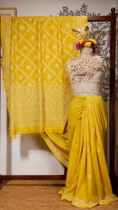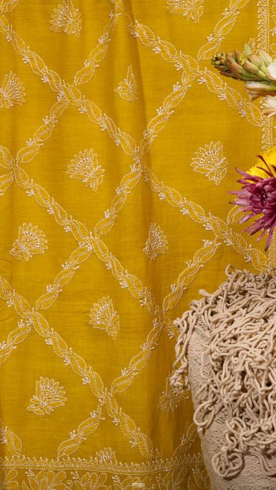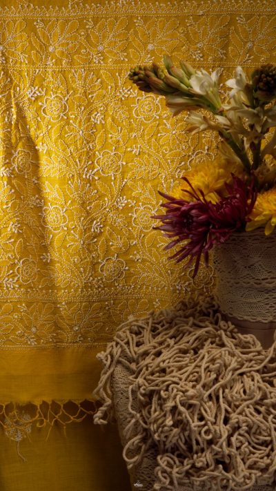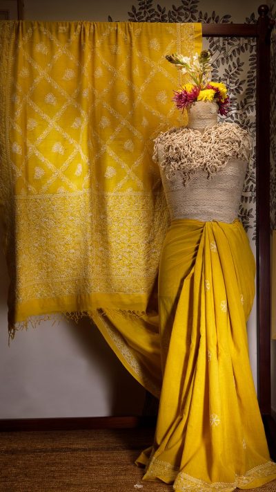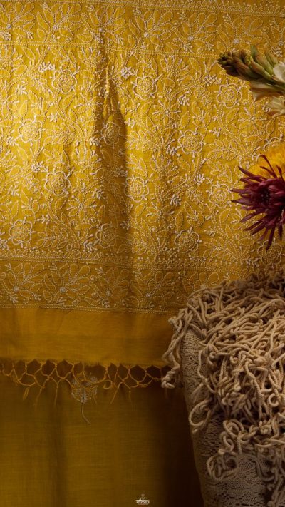 The collection is also my heart collective, as it involves Artisan Skill Enhancement at each level, along with using good quality handwoven cotton fabric, all of which is fast disappearing from Chikankari everyday sarees.”- Vidhi Rastogi, Head of Creative, Meiraas