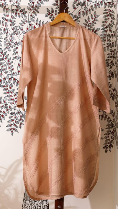 A kurta that has taken our breath away with the simplicity of its design and yet the skilled artisanal work with rare stitches and lesser filament of Chikankari embroidery threads.