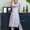 White Handloom Linen Semi Stitched Kurta with Resham Chikankari embroidery showing tiny Jacaranda blossoms & lace detailing. Stitching of the Kurta is complimentary by Meiraas. Please choose your size from the size chart.