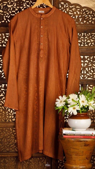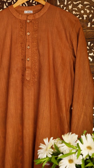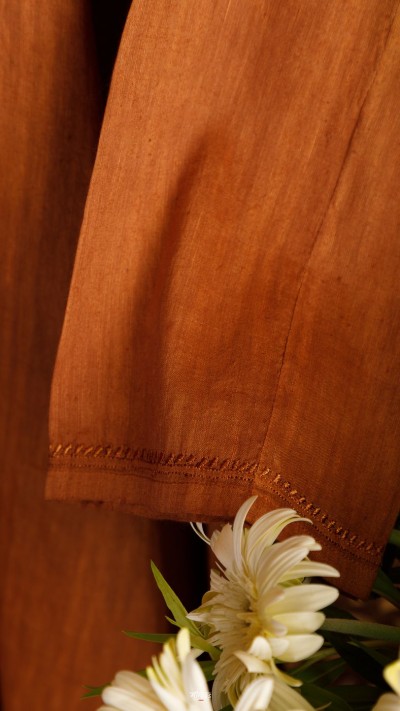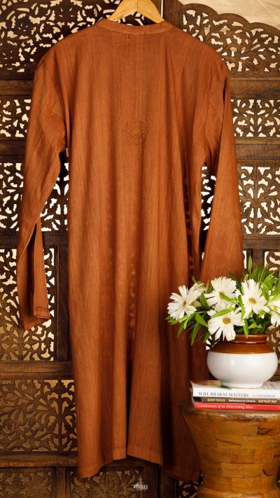 The sleeves has a phanda embroidery detailing. The back has a statement antique round motif with floral detailing, symbolising Earth & its life nurturing properties, making this the minimalist elegant kurta not only perfect to wear at any occasion, whether semi formal or formal, but also a conversation starter.