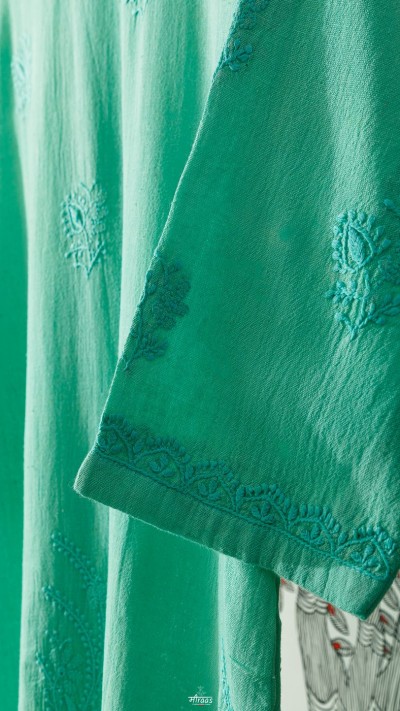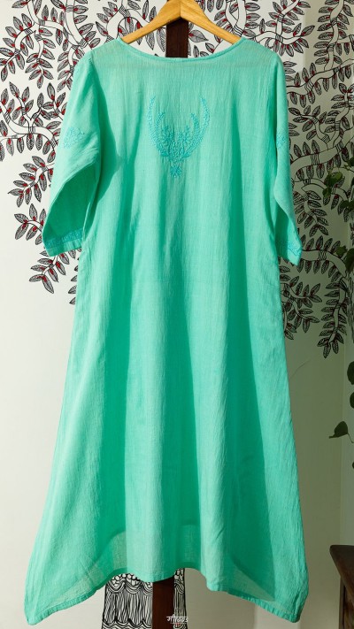 A summer fresh Green Chikankari dress in Kala Cotton Handloom fabric.
