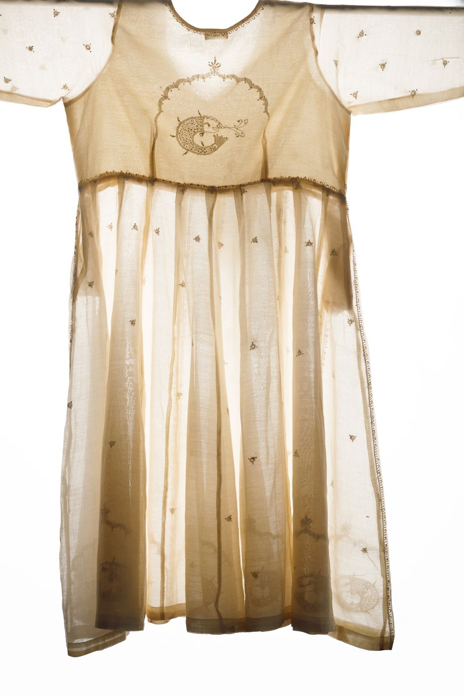 The bust portion of the dress alone is lined with soft cotton lining, and rest of the dress has been left sheer, to keep the structure & design fluid.