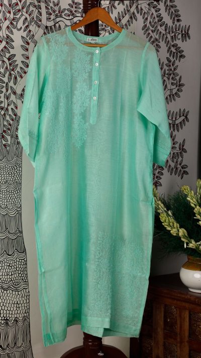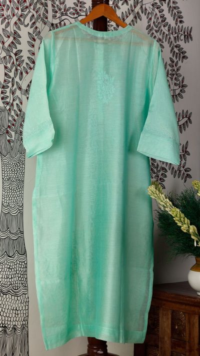 Loves Pistachio Green Chikankari Chanderi Silk Kurti! Perfect for Festive & Wedding season beyond summers.