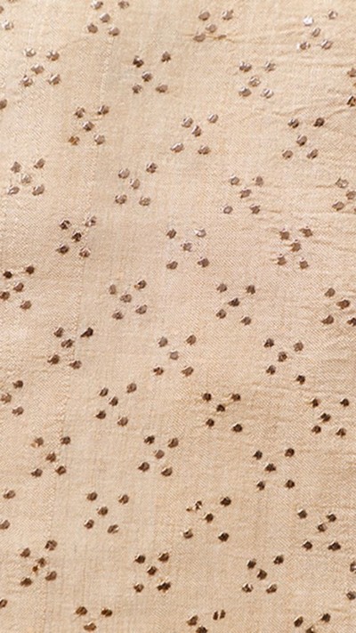 Reminiscent of the Bollywood divas of 1950s, the sarees in this collection aim at re living that timeless & elegant era, that is so close to the timelessness of Mukaish Embroidery. This Cream Coloured Saree is adorned with delicate embroidery of Mukaish in star like pattern on supple Moonga Silk fabric. The saree is dyeable