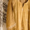 Swarna Ambi or the Golden Mango is an ode to the Fruit of Awadh. The front panel & sleeves of the kurta are heavily designed with miniature Paisley Motif, and the back has a stunning Floral motif with very rare stitches of Bijli & Murri.