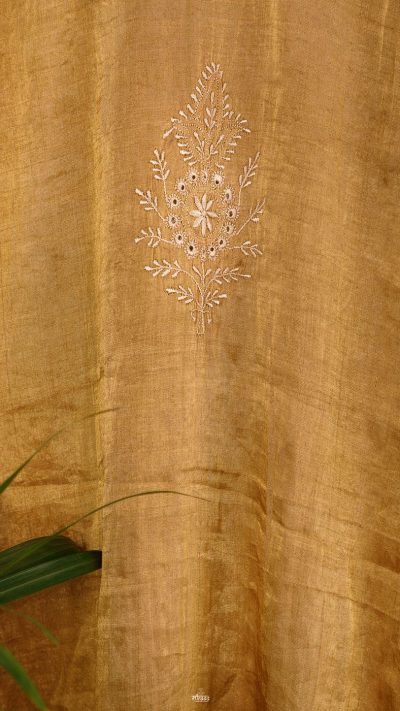 Swarna is a hue we love! We introduced the fabric of Zari Silk (or Tissue) with Resham Chikankari, back in 2020, with our Dhanlakshmi collection. Since then, this is one of our most revered & loved creations.