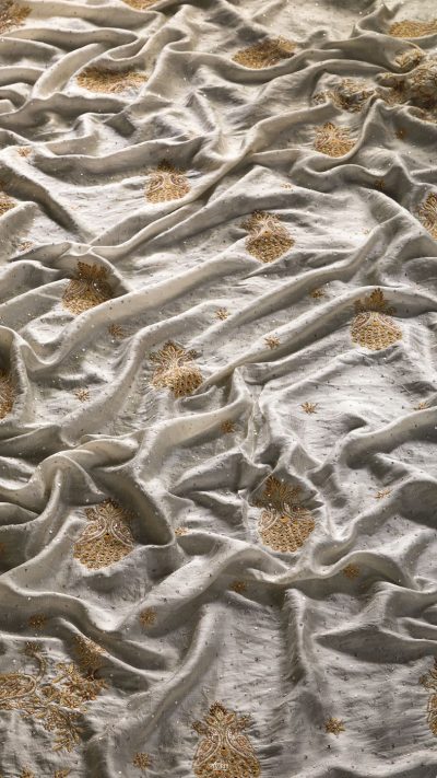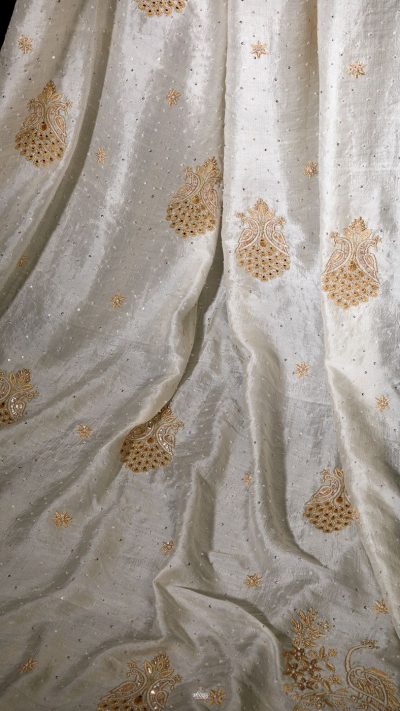 Three Grand Heritage Embroideries come together, to create an artistic poetry on handwoven Mulberry Silk fabric! Swarna Mayur is for connoisseurs who are building their own legacy.