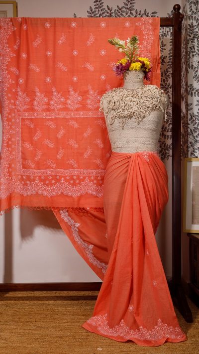 The collection is also my heart collective, as it involves Artisan Skill Enhancement at each level, along with using good quality handwoven cotton fabric, all of which is fast disappearing from Chikankari everyday sarees.”- Vidhi Rastogi, Head of Creative, Meiraas