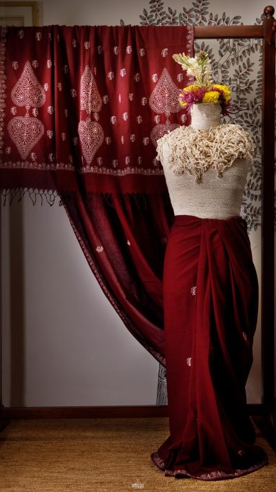 The collection is also my heart collective, as it involves Artisan Skill Enhancement at each level, along with using good quality handwoven cotton fabric, all of which are fast disappearing from Chikankari everyday sarees.” – Vidhi Rastogi, Head of Creative, Meiraas