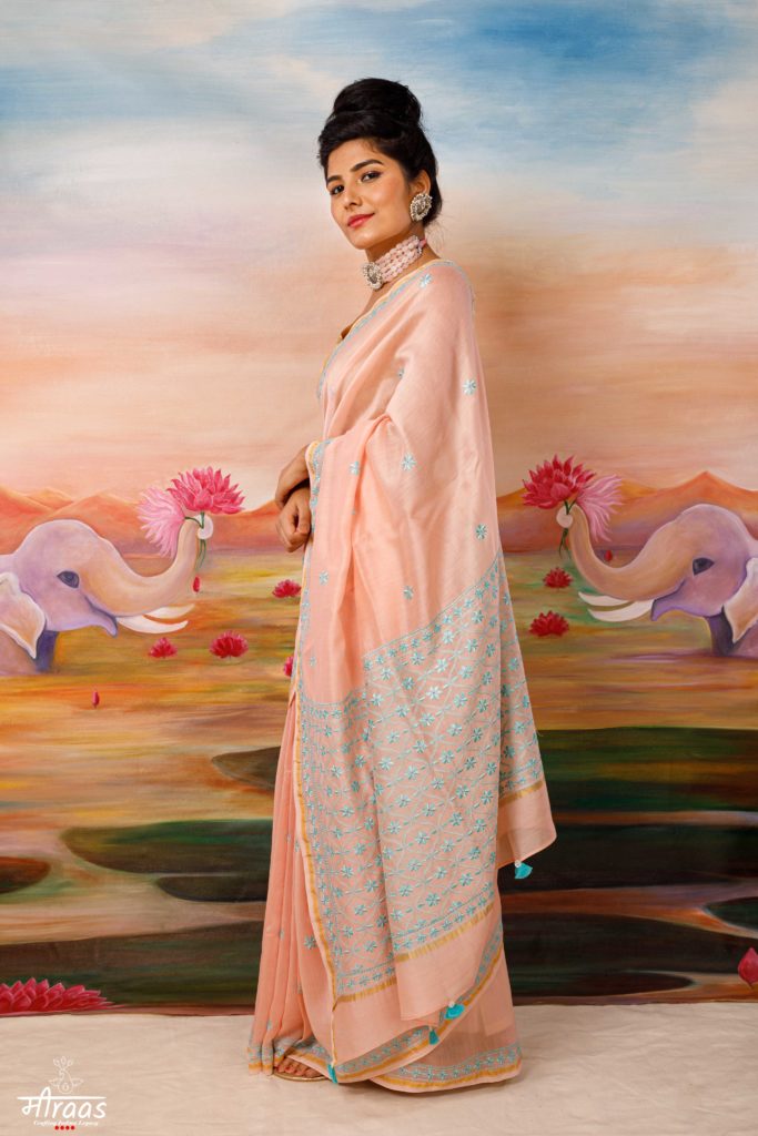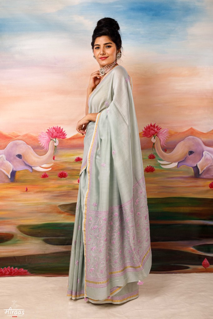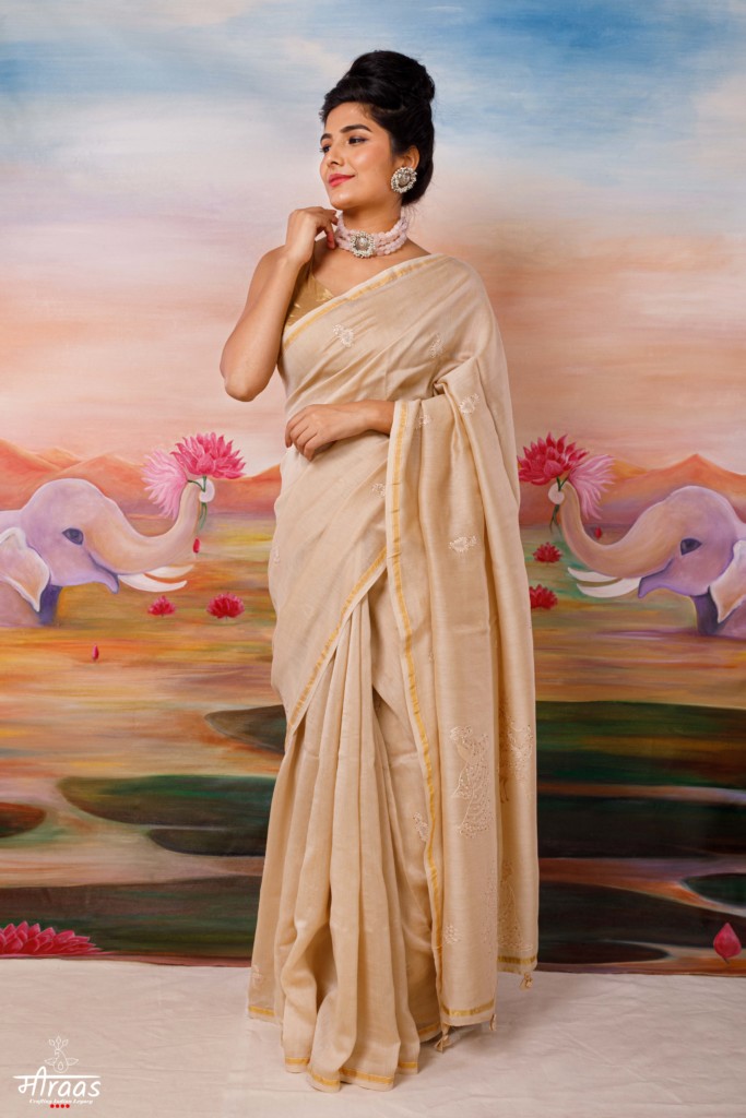 A graceful & regal fawn coloured Resham Chikankari with Meiraas original concept of Mrigya (read blog post on the motif here) This signature saree of... Continue reading