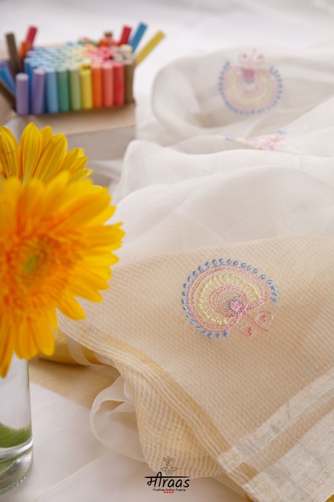 Antique Masterclass Jaali Chikankari Hand Embroidery Dupatta on handwoven Organza with Ganga Jamuna borders of Tested Zari Gold & Silver on either side. The Sustainability... Continue reading