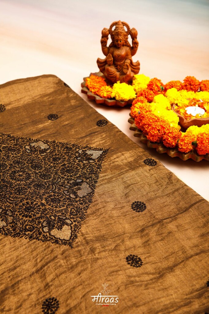 This saree is Ready To Ship. Please read all details below: Wine coloured Mukaish Hand Emboidered saree in Pure Georgette Silk!! Perfect for a cocktail... Continue reading